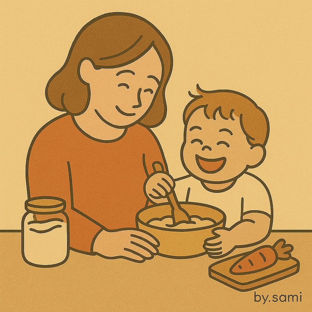 "이건 OO이랑 엄마가 만든 거야!" 라고 말해주면, 아기가 식사에 대한 흥미를 더욱 느끼게 돼요.