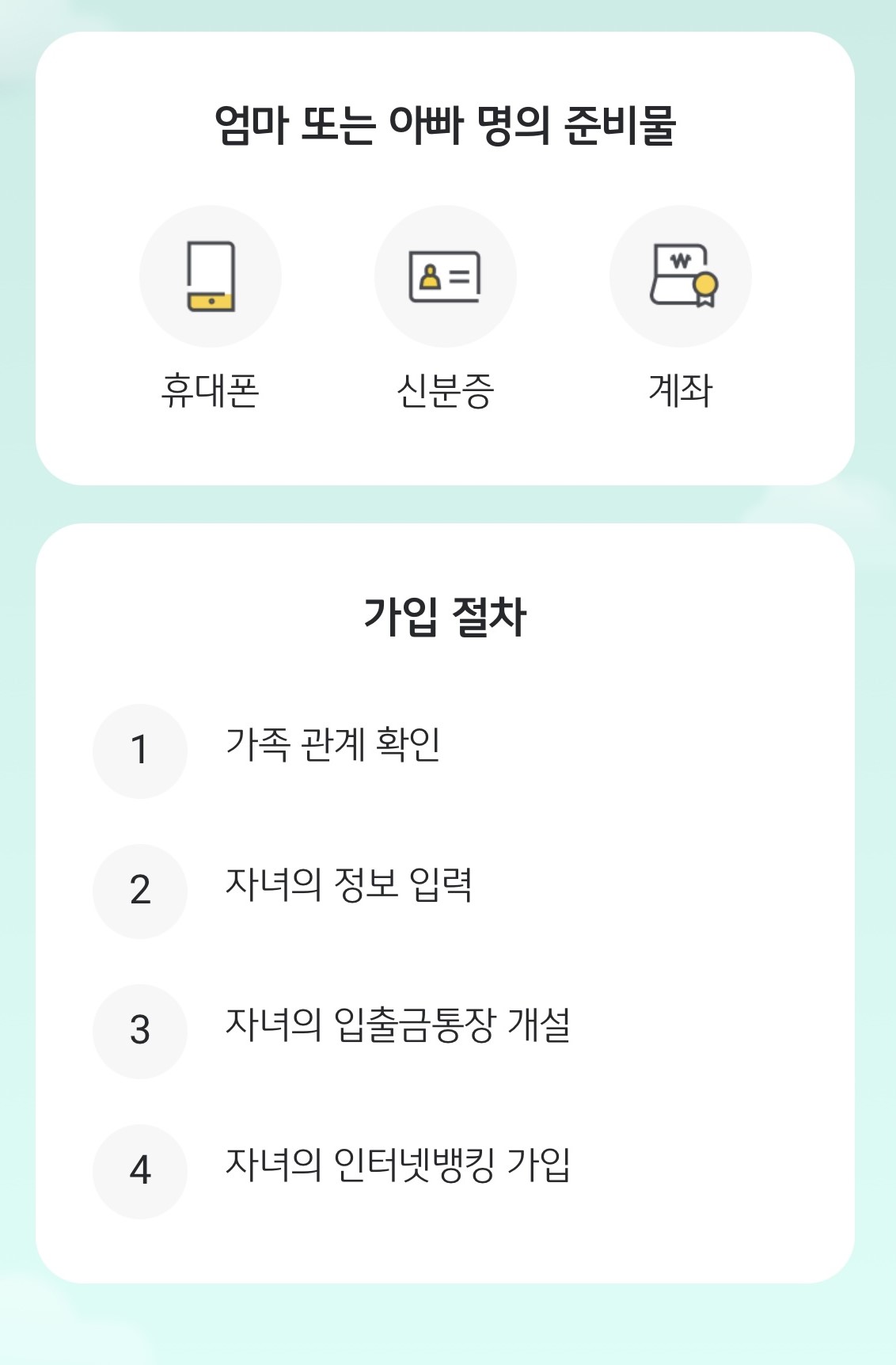 • 아동수당 전용 → 자녀 명의 입출금 통장