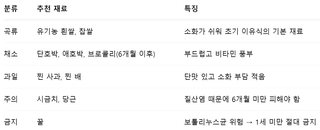 초기 이유식은 맛보다는 소화와 영양이 우선이에요.