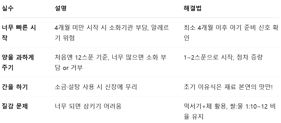 ⚠️ 초기 이유식에서 흔한 실수와 해결법